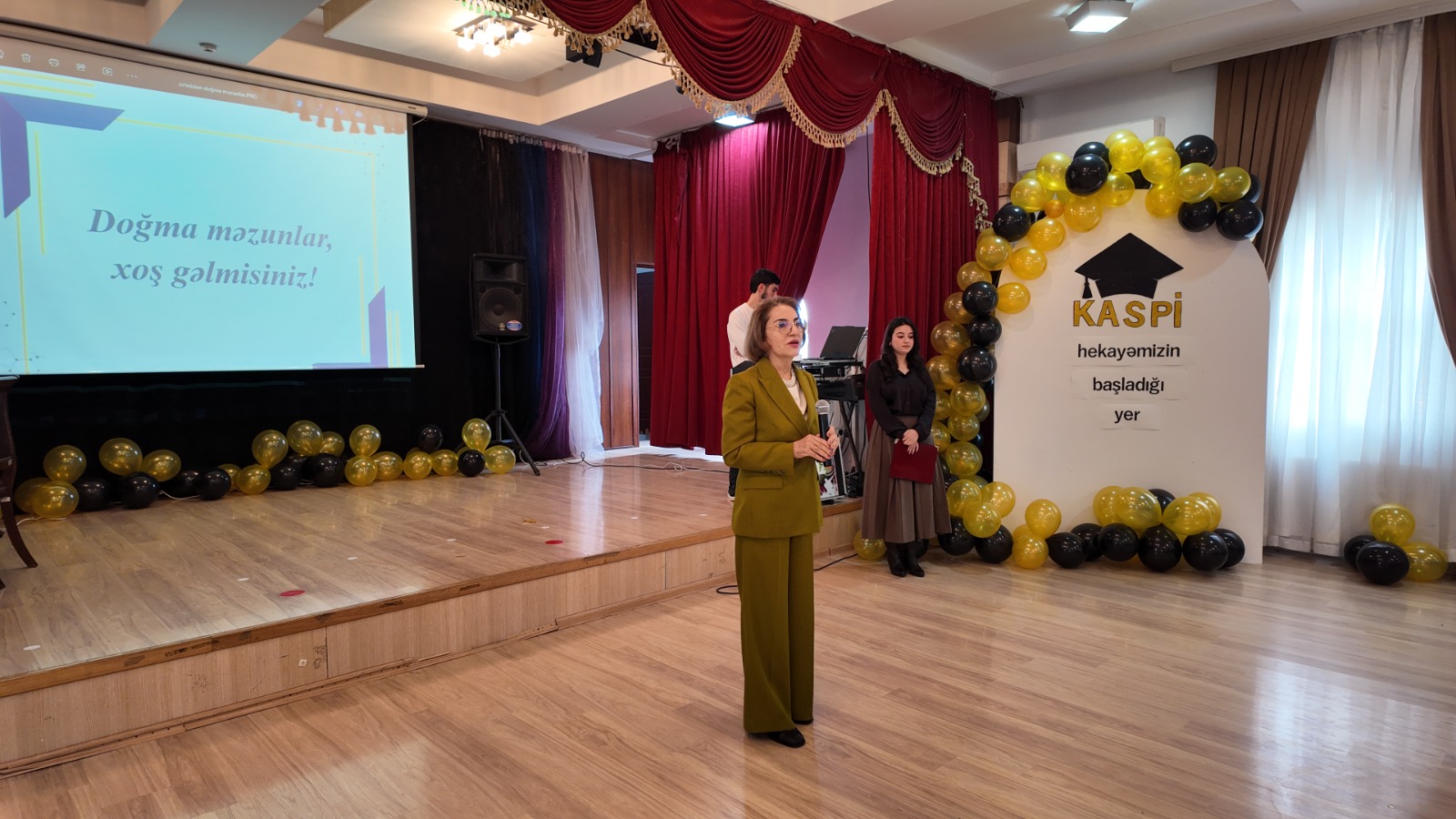 Daha sonra Kaspi Təhsil Şirkətinin İdarə Heyətinin sədri Sona Vəliyeva çıxış edərək məzunları qazandıqları uğurlara görə təbrik edib və onlara ən xoş arzularını bildirib.