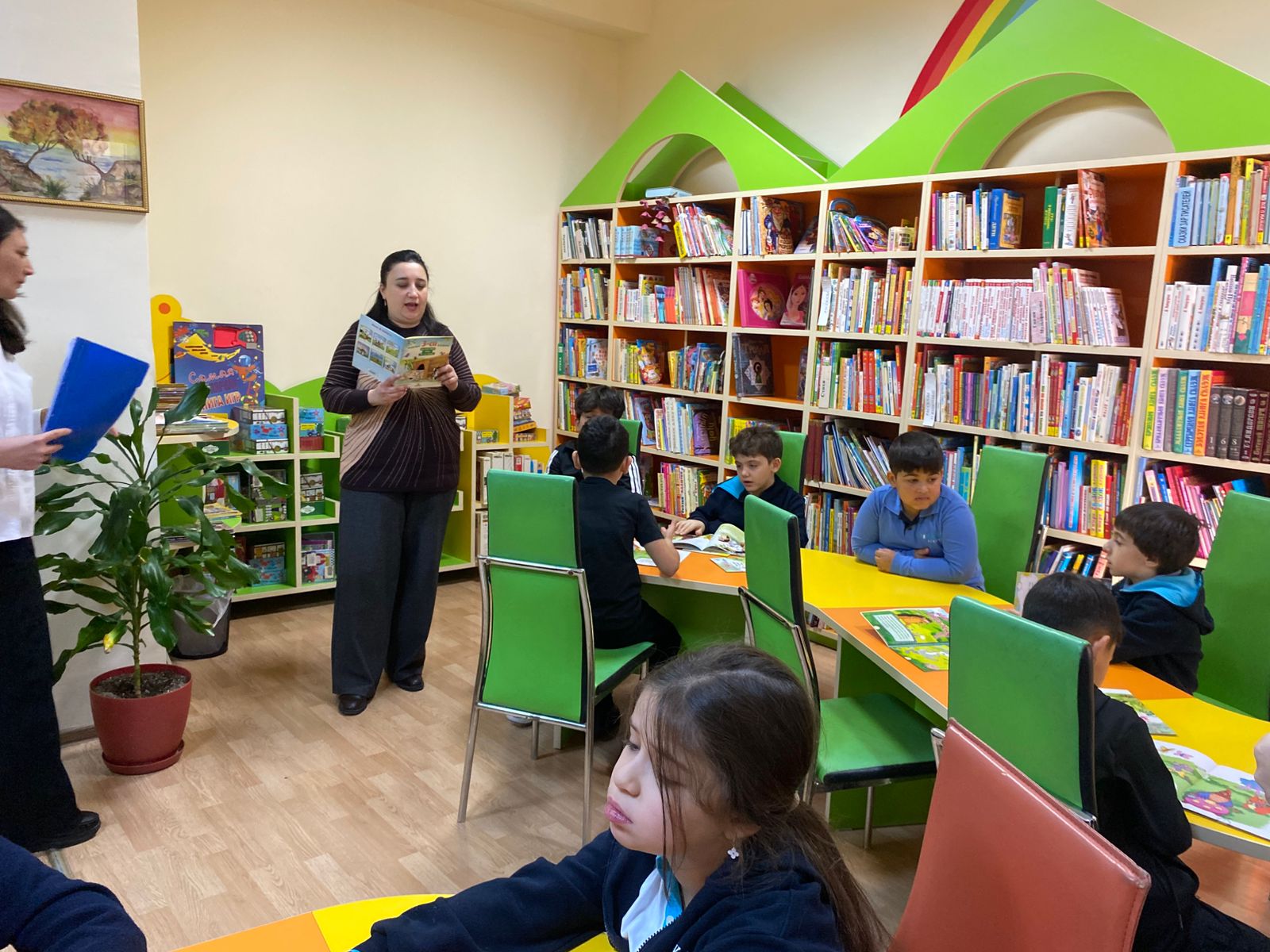 Şagirdlər kitabxana ilə yaxından tanış olublar. Daha sonra kitabxana əməkdaşları tərəfindən onlara kitabxananın yaranma tarixi haqqında məlumat verilib. Şagirdlər üçün ingilis dilində müxtəlif maraqlı və öyrədici nağıllar səsləndirilib. Məktəblilərlə nağılların məzmunu ətrafında fikir mübadiləsi aparılıb.